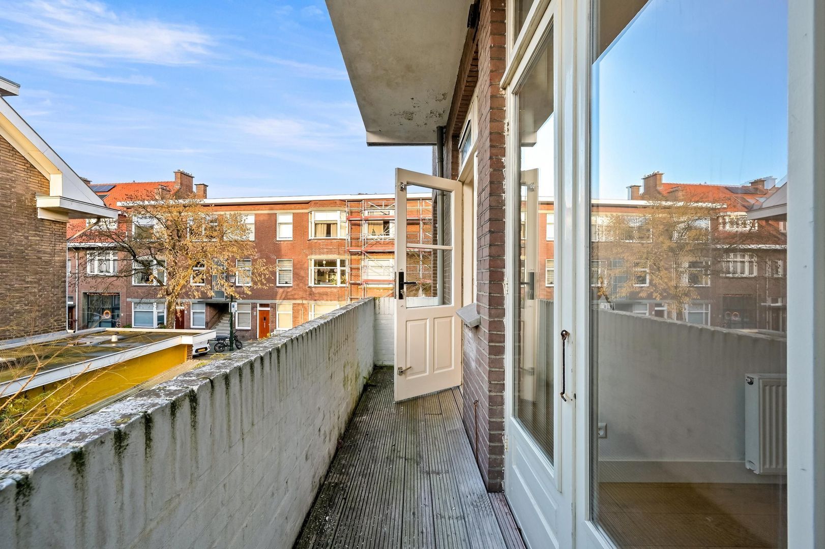 Het balkon op het noordwesten biedt een rustige plek om buiten te zitten en te genieten van de middag- en avondzon. In combinatie met de goede staat van onderhoud, eigen grond en een actieve VvE is dit een licht en comfortabel appartement op een bijzonder fijne plek in Den Haag.