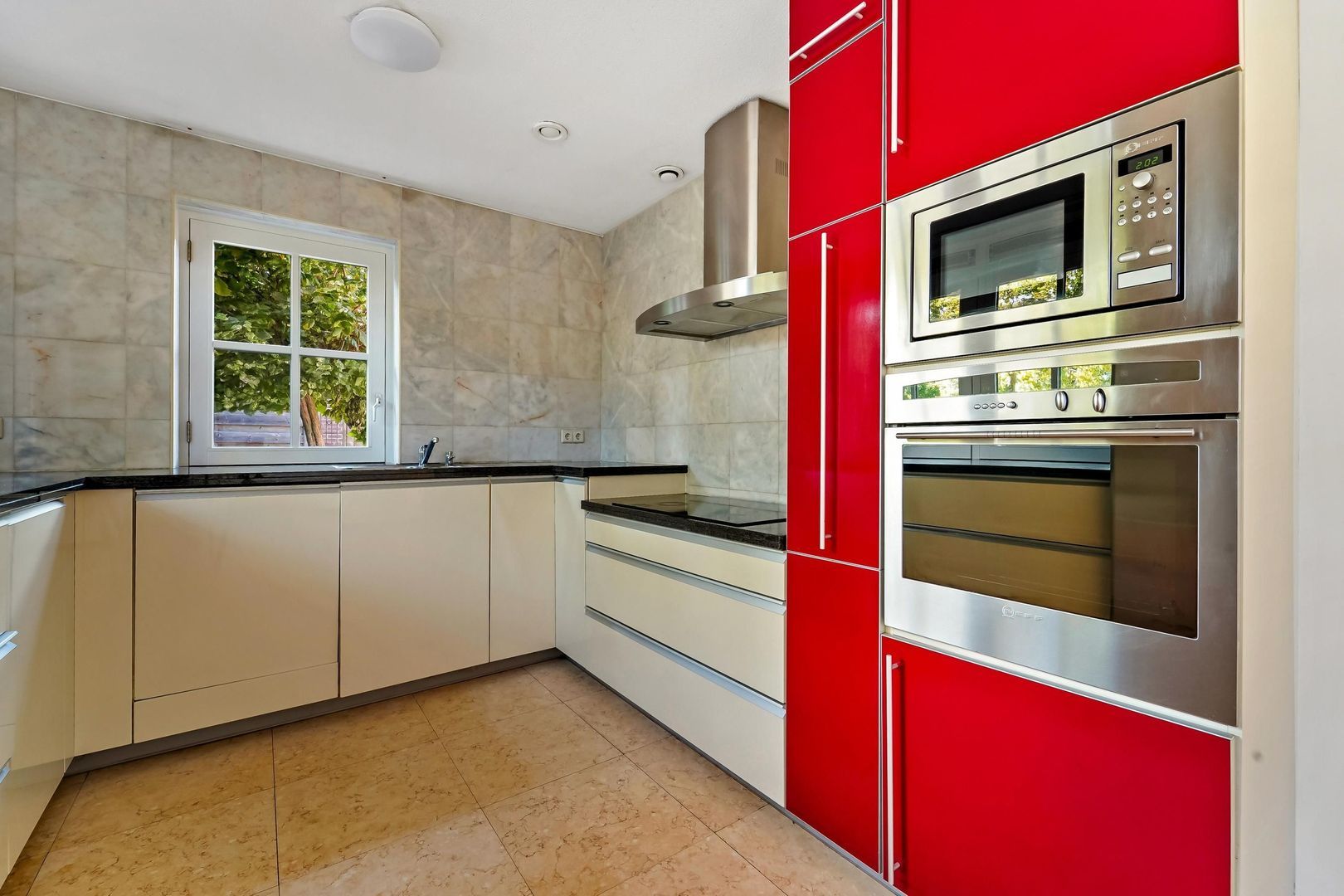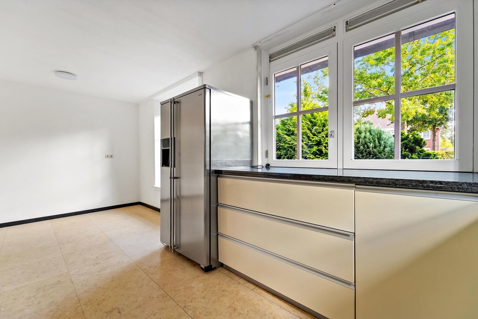 • Halfopen keuken van ca. 17 m², uitgerust met inbouwapparatuur en een Amerikaanse koelkast;