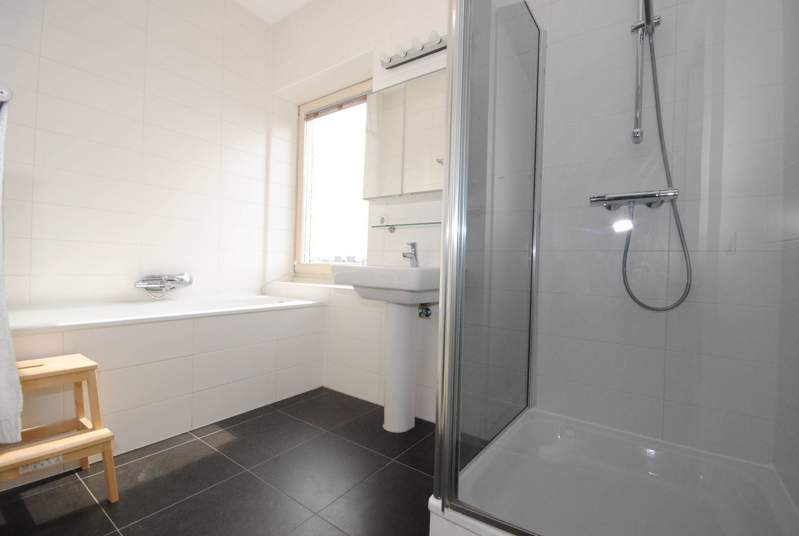 Badkamer ca. 3.20x2.10 voorzien van wastafel, douche en bad.
